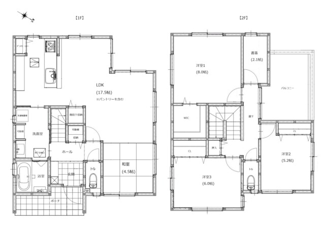 | 間取り | 4SLDK | 間取り内訳 | 1FLDK17.5畳×1室 1F和4.5畳×1室 2F洋8畳×1室 2F洋6畳×1室 2F洋5.2畳×1室 |