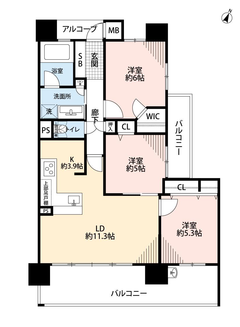 | 間取り | 3LDK | 間取り内訳 | LDK15.2畳 洋6畳 洋5.3畳 洋5畳 |