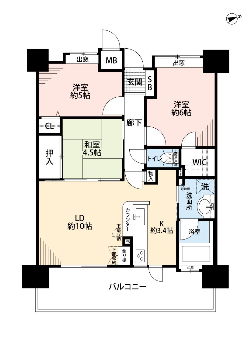 | 間取り | 3LDK | 間取り内訳 | 和4.5畳 洋6畳 洋5畳 |
