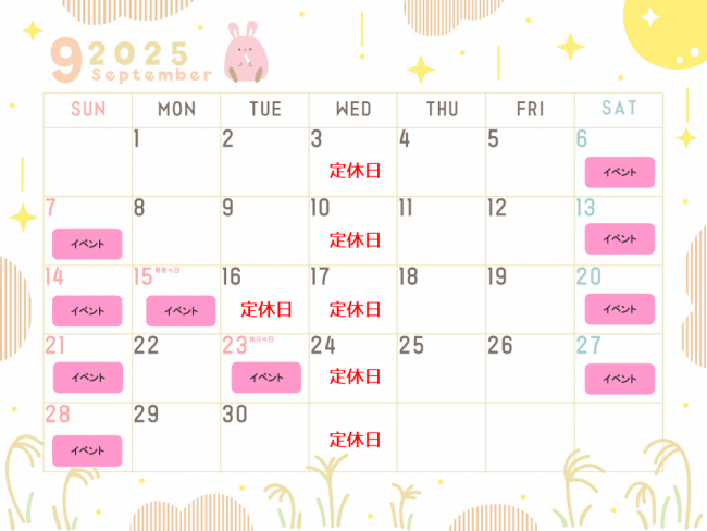 9月イベント詳細はホームページのイベント情報をご覧ください。